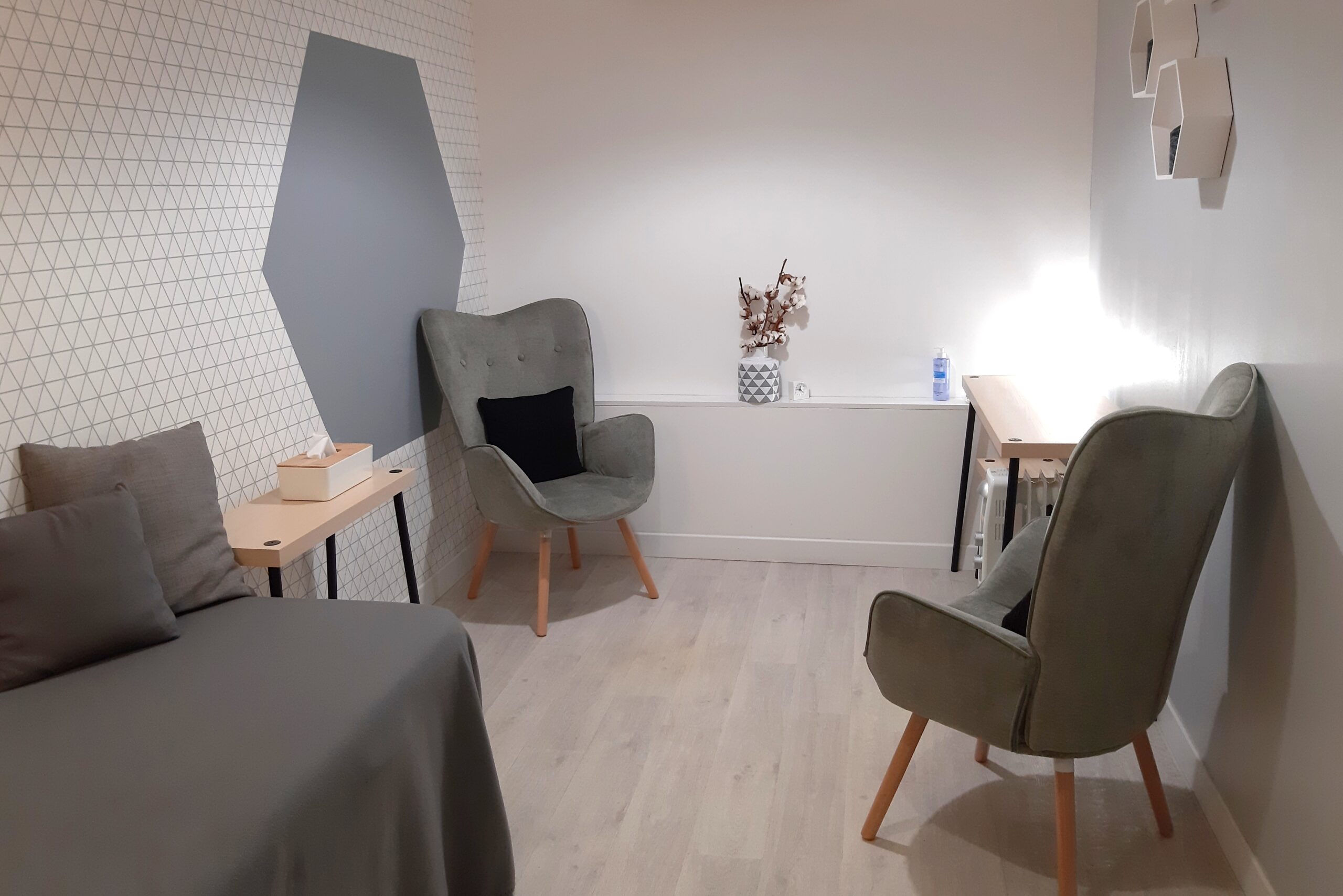 La décoration scandinave douce et chaleureuse crée une atmosphère cocooning. Particulièrement adapté à la psychothérapie, relaxation, hypnose, sophrologie.